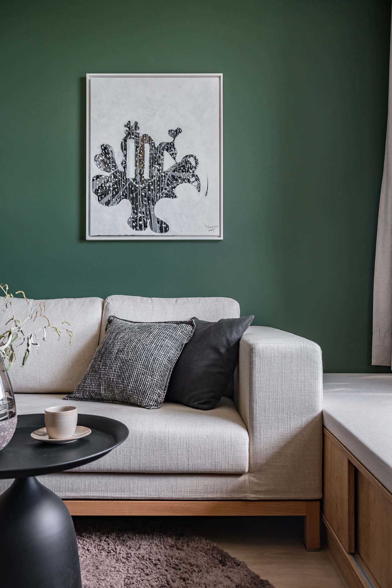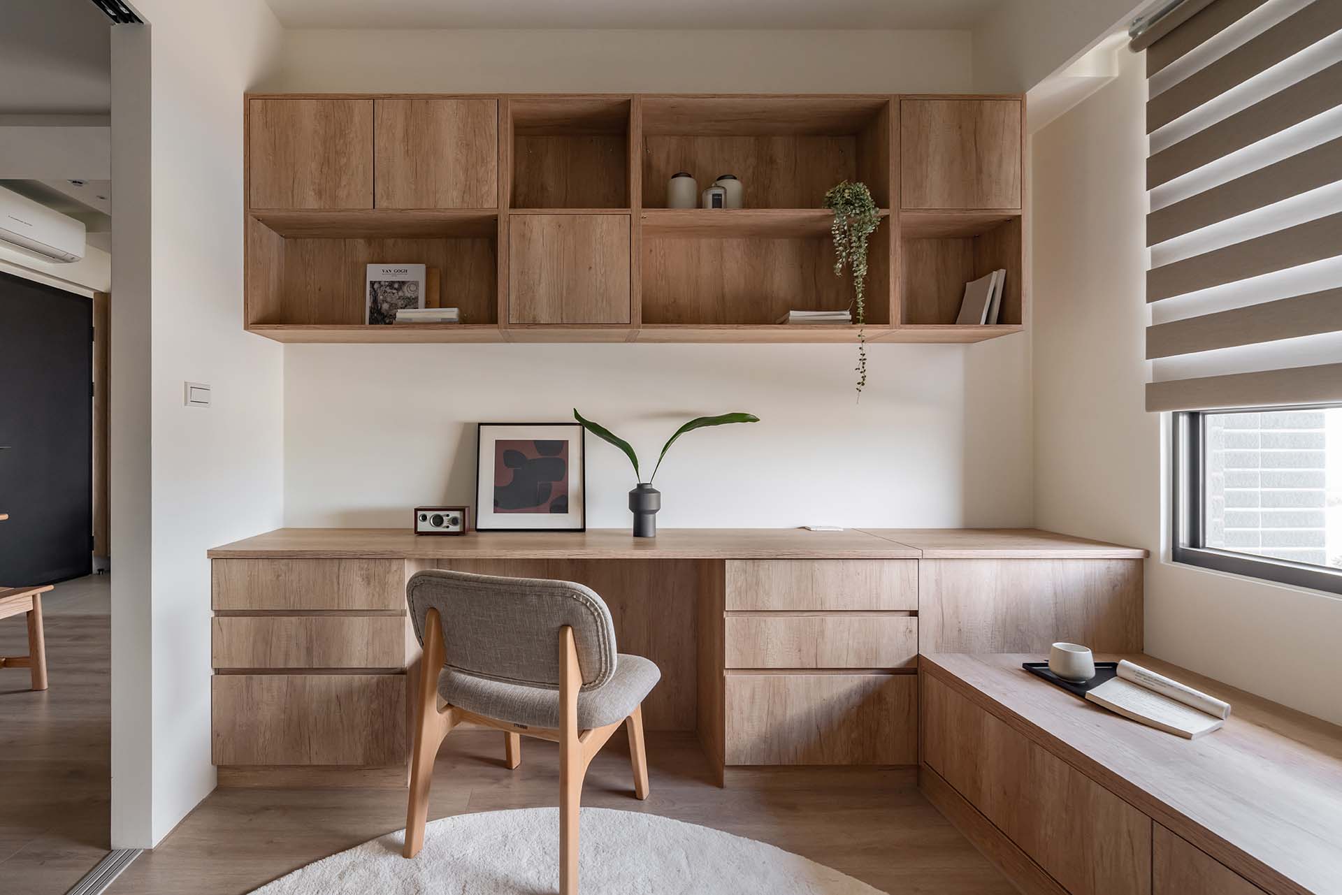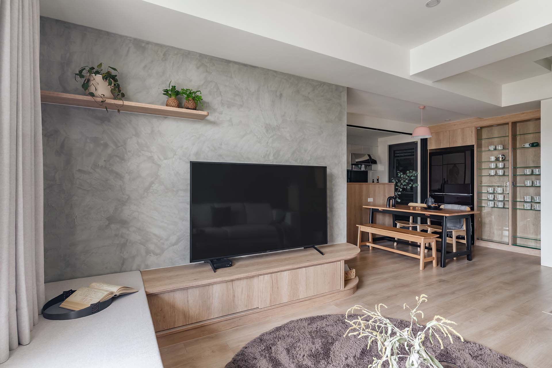 輕透的玻璃拉門,除了將自然光從書房導入昏暗的廚房,也替餐廚區勾勒出彈性的版圖,躲在自己的小天地大展廚藝,抑或與家人共享空間的寬闊,皆輕鬆掌握在手裡,就像生活與工作的平衡,精準拿捏而游刃有餘。