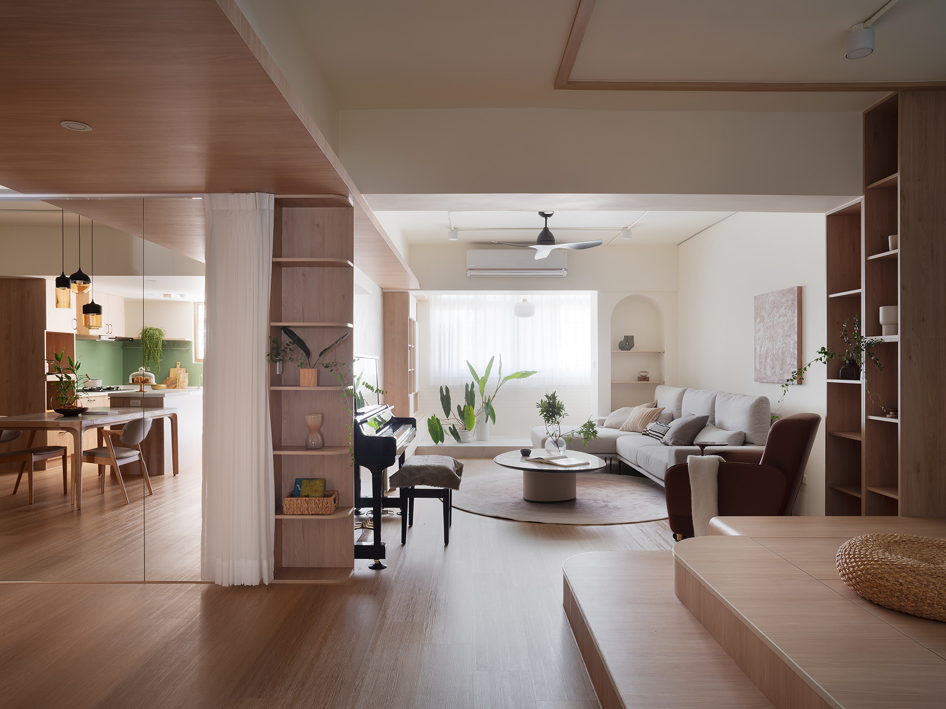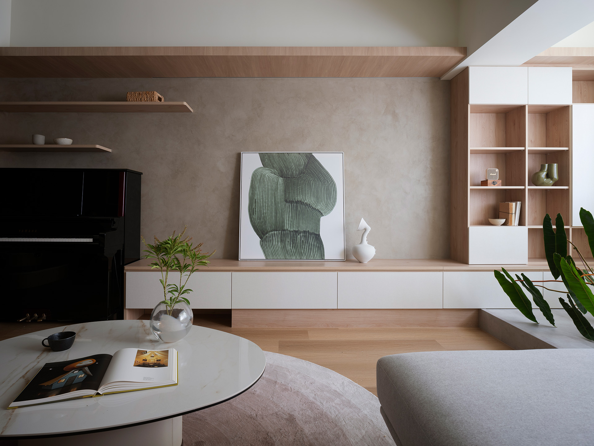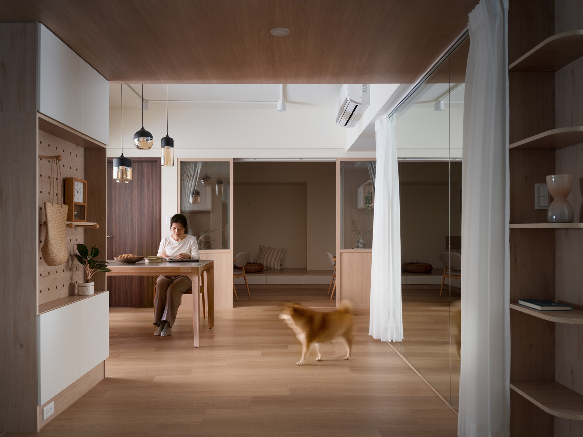 我們追求的不再是應變的彈性,而是縝密思考過的每一個需求,每一個房間都充滿成熟的規劃機能:讓喜歡玩音樂的弟弟有專屬的空間盡情揮灑、替喜歡跳舞的姊姊在走廊放上大面積的落地鏡、還有必要時可以透過推拉門區隔隱私的多功能書房。每一個細節都放入心思、為的是盡可能包覆每一種未來。