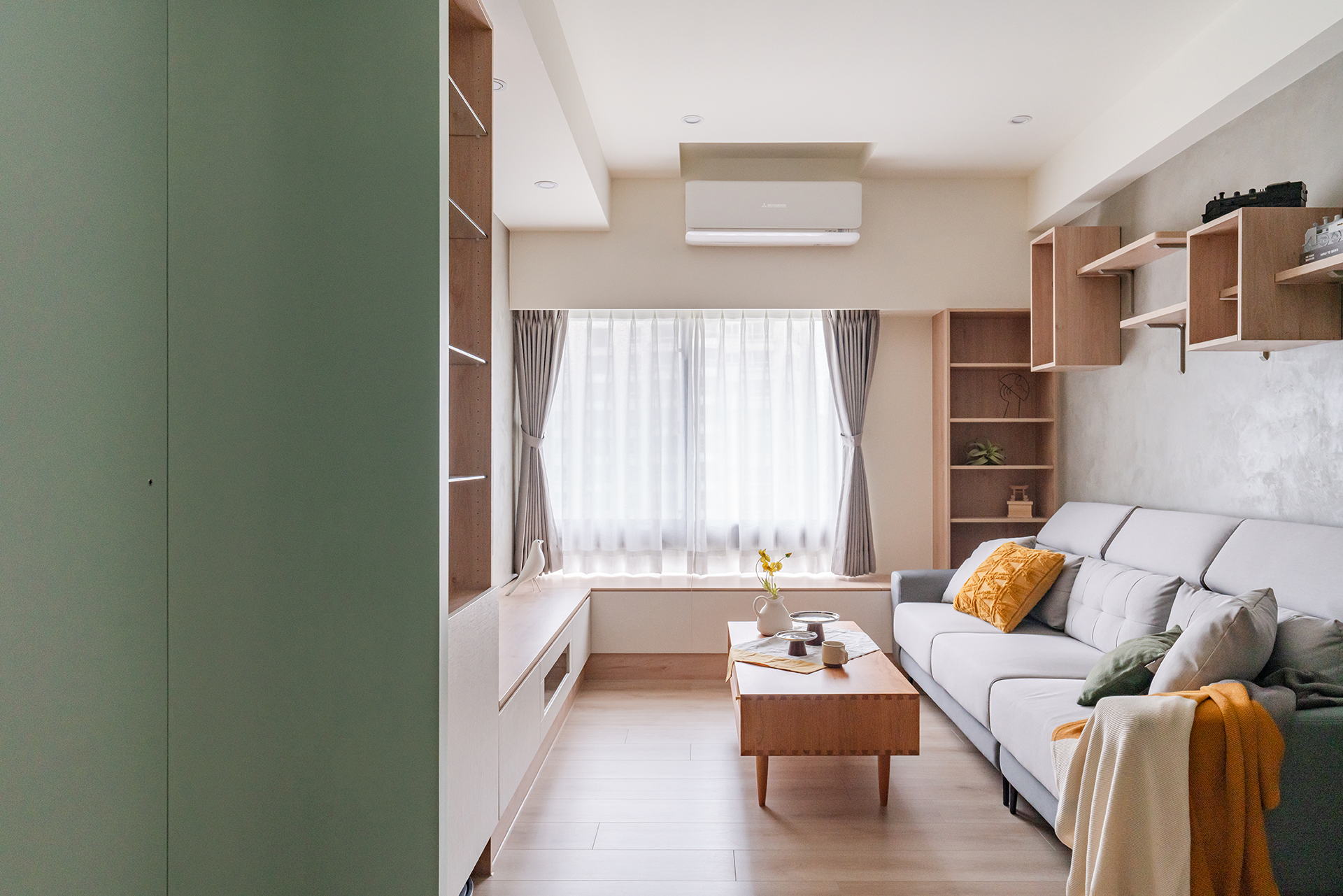 連接主臥與浴室的隱藏門,偷偷幫你修飾房間門棕黑的線條,讓你在今天的奔波裡,忘卻辛勞,記住美好;蔥綠色的弧形的隔間張開的雙臂要迎接你,卻故意吊你胃口的問著今天有沒有想我: